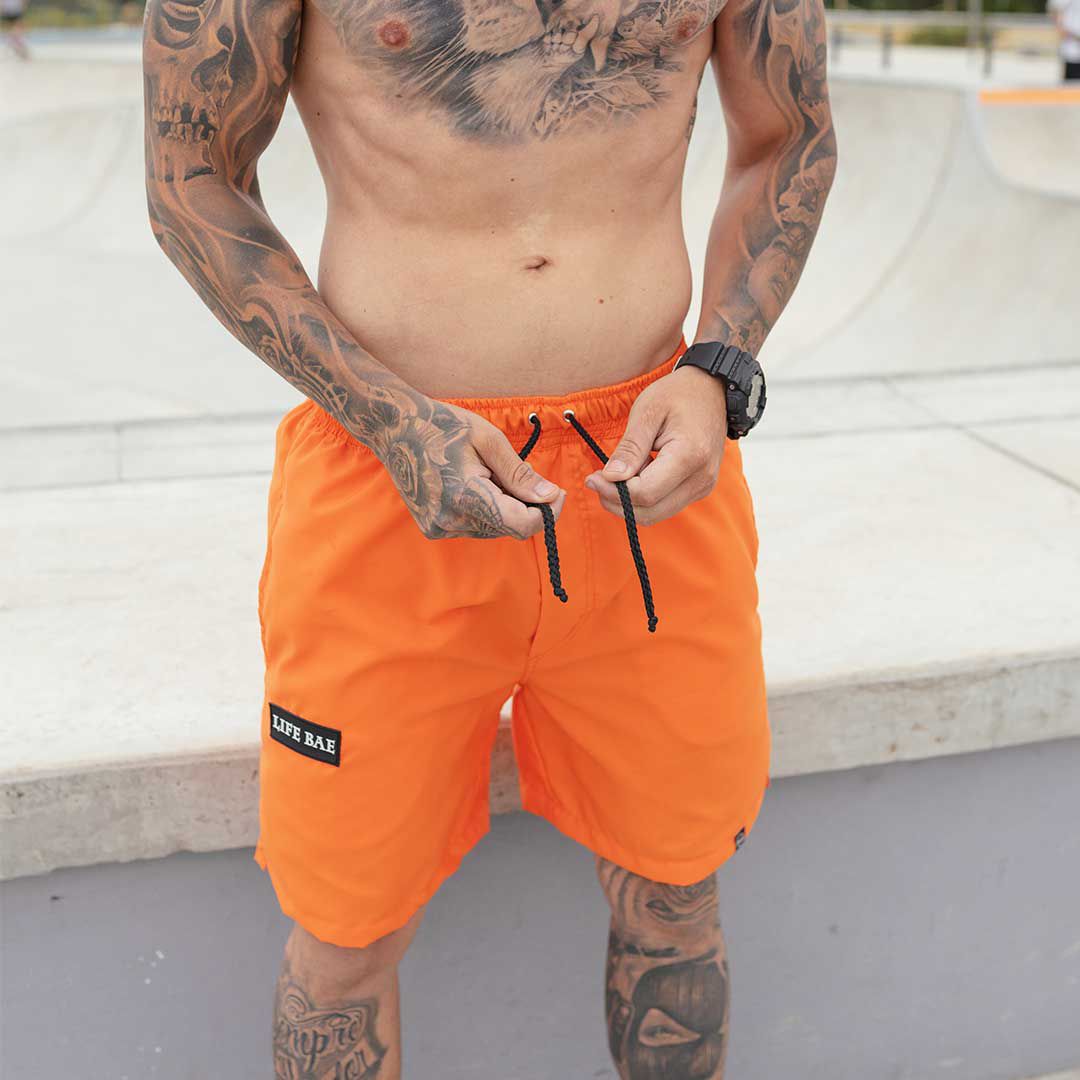 Bermuda masculina em tactel, o famoso shorts de praia estilo mauricinho. Costuras reforçadas duplas, Cós(com elastico) com ilhós e cordão diferenciado, bolsos grandes e aplique "Life Bae" na perna!